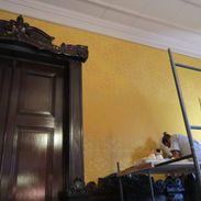 Restauração de uma área de 32m2 da pintura mural imitativa de tecido adamascado presente nas paredes da sacristia da Igreja de Nossa Senhora da Candelária, Centro - Rio de Janeiro