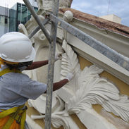Restauração dos ornatos de fachada principal do Teatro Municipal de Niterói, dos 42 balcões dos camarotes internos e da boca de cena.
