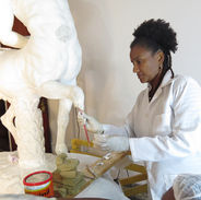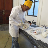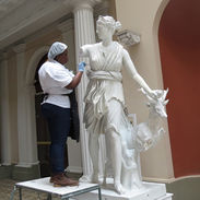 Projeto de restauração de 11 moldagens do acervo do MNBA, realizado nas dependências da instituição, utilizando-se diagnóstico por imagem, exames laboratoriais e radiográficos para eliminação de patologias estruturais e reintegração estética das esculturas.